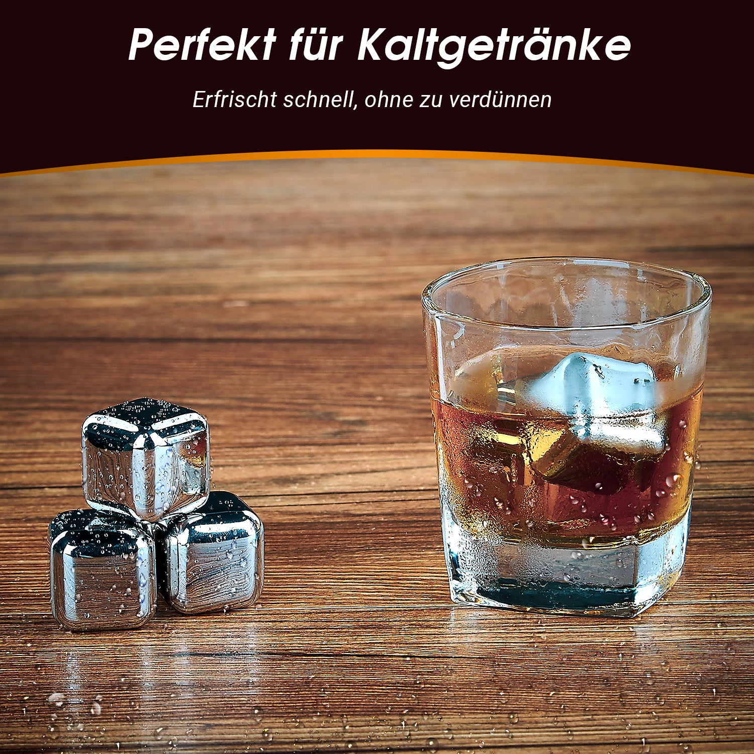 Die Whiskey-Steine" sind aus lebensmittelechtem Edelstahl gefertigt und FDA- und LFGB-zertifiziert. Sie kühlen nicht nur schneller ab als andere Materialien, sondern im Gegensatz zu Alternativen aus Granit oder Speckstein besteht auch nicht die Gefahr, dass Ihr Lieblingsglas zerbricht.Ein perfektes Geschenk für jeden, z. B. zu Weihnachten, zum Vatertag, zum Geburtstag und zu vielen anderen Anlässen.